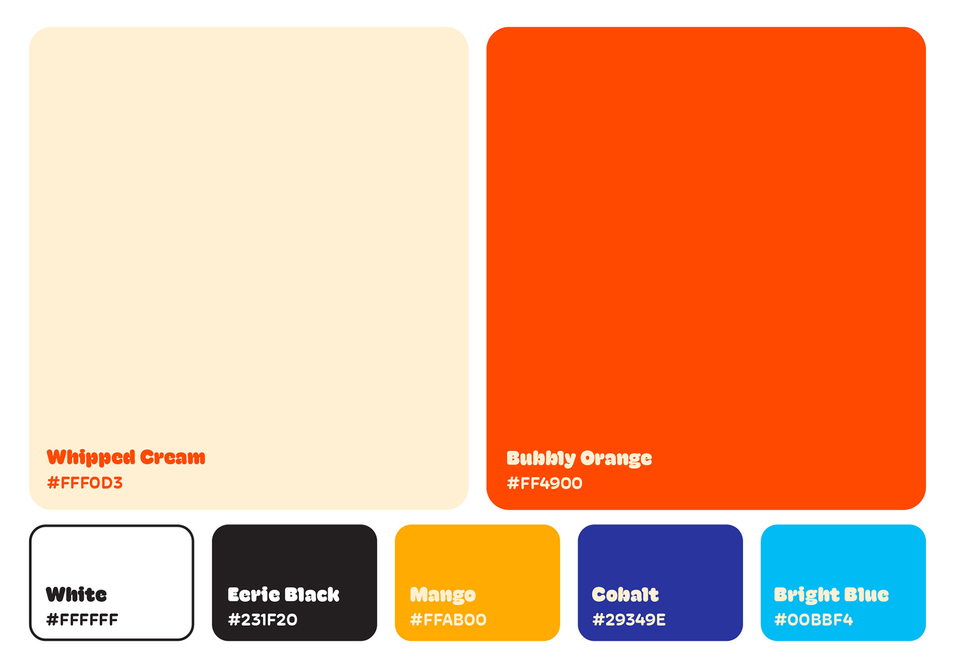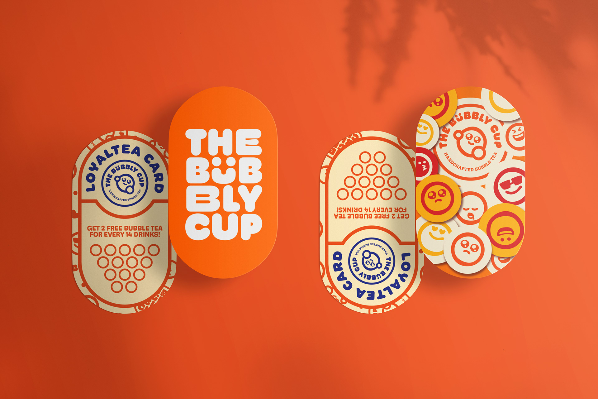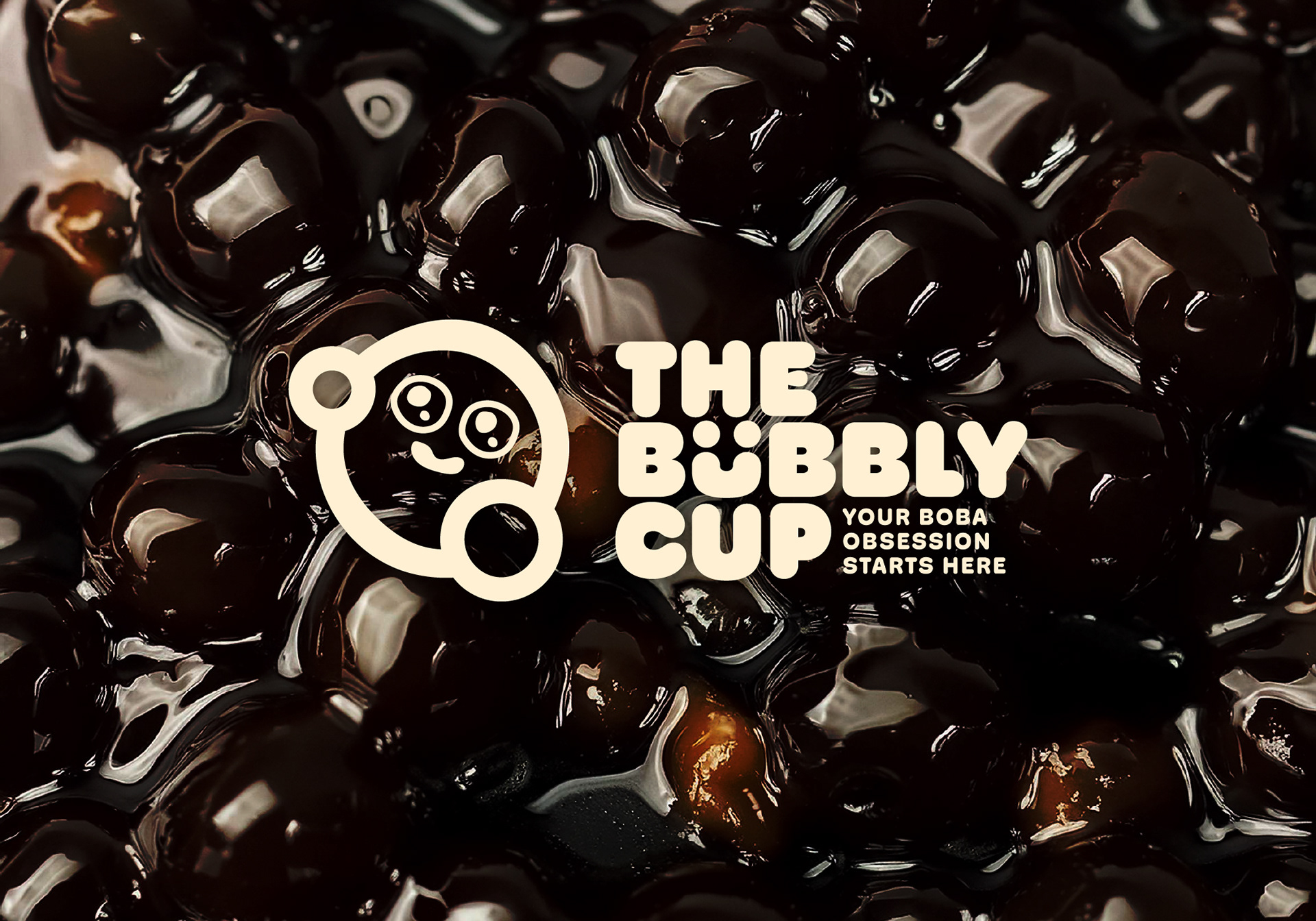 Inspired by the playful and delightful experience of enjoying bubble tea, the brand identity features a cute and bubbly look. The logo is a tapioca pearl with a cute pleading face emoji, adding a touch of charm and personality. The font style is soft, round, and bubbly, capturing the essence of fun and vibrancy.