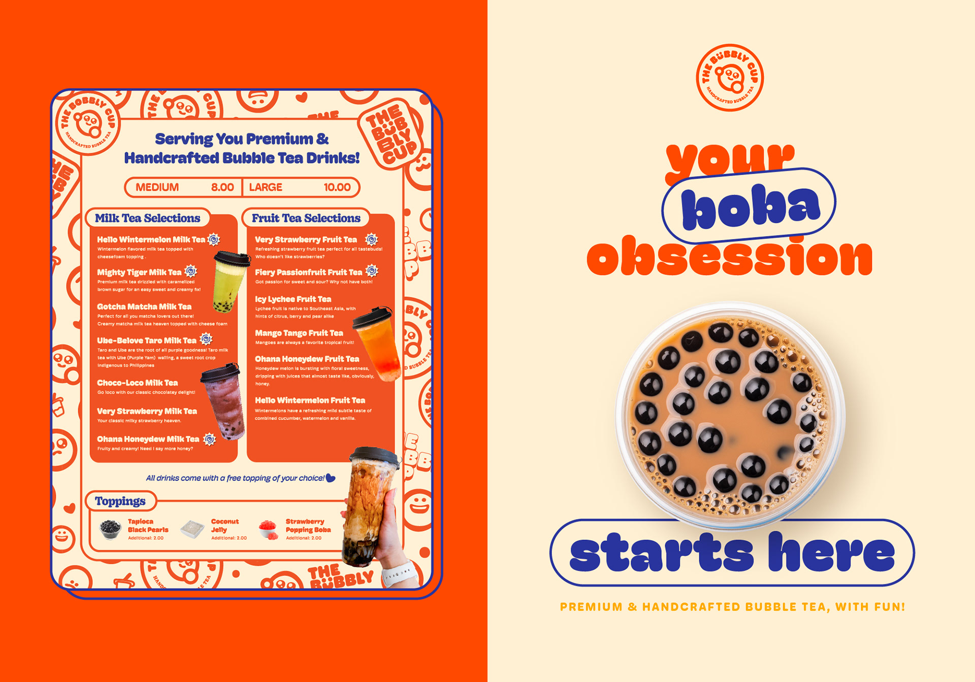 The Bubbly Cup is a local bubble tea shop that offers delicious, premium, and handcrafted bubble tea. Our goal was to create a brand identity that reflects the fun, vibrant, and joyful essence of The Bubbly Cup.